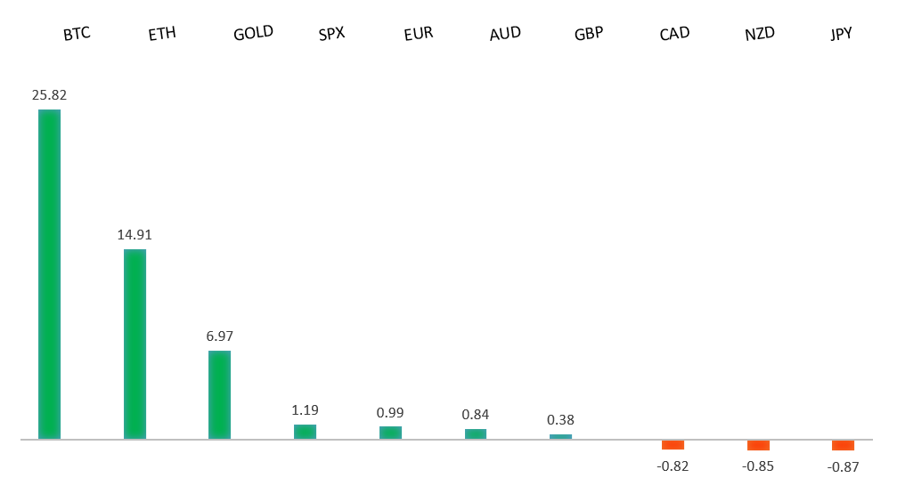 Peformance chart: 30 Day Performance vs. US dollar (%)