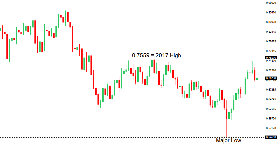 The SNB remains uncomfortable with Franc appreciation and continues to remind the market it will need to be careful about any attempts at trying to force an appreciation in the currency. But the SNB will also need to be careful right now, as its strategy to weaken the Franc is facing headwinds from a less certain global outlook. Any signs of renewed risk liquidation will likely invite a very large wave of demand for the Franc that will put the SNB in the more challenging position of needing to back up its talk with action, that ultimately, may not prove to be as effective as it once was, given where we're at in the monetary policy cycle.AUDUSD – technical overview