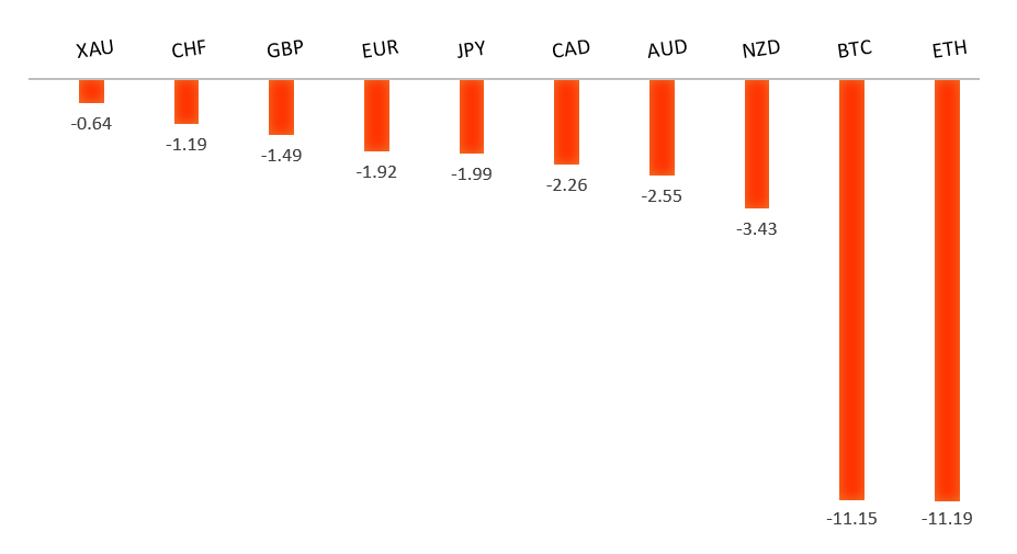 Peformance chart: 30 Day Performance vs. US dollar (%)
