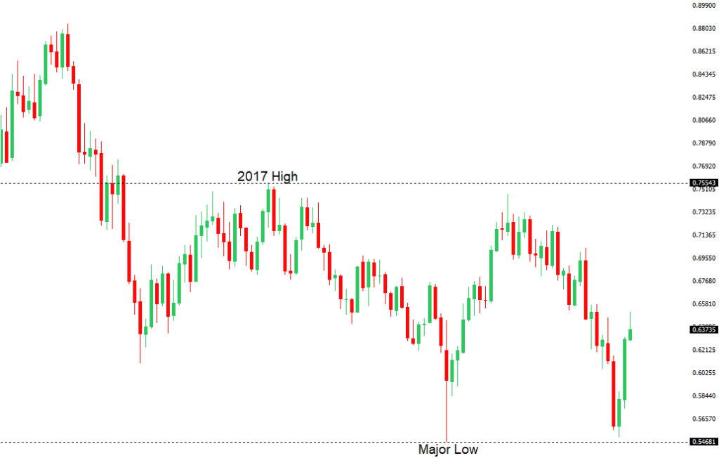 Canada economic data has not been impressive of late, while ongoing downside pressure in commodities and risk assets have also weighed on the Canadian Dollar, which put in its lowest close against the Buck in six weeks. Key standouts on Monday’s calendar come from German Ifo reads, Eurozone construction output and wage growth, UK CBI trends, Canada producer prices, and US NAHB housing.NZDUSD – technical overview