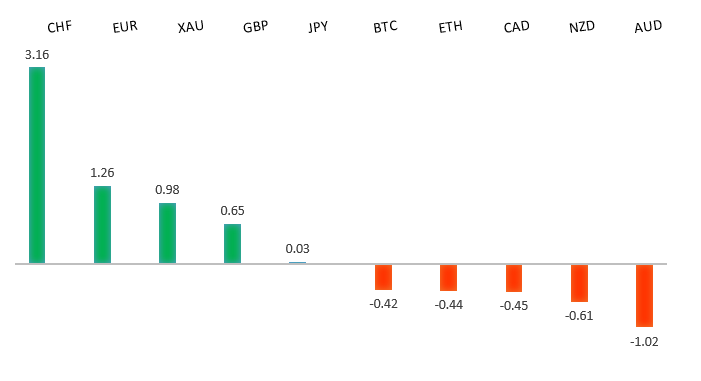 Peformance chart: 30 Day Performance vs. US dollar (%)