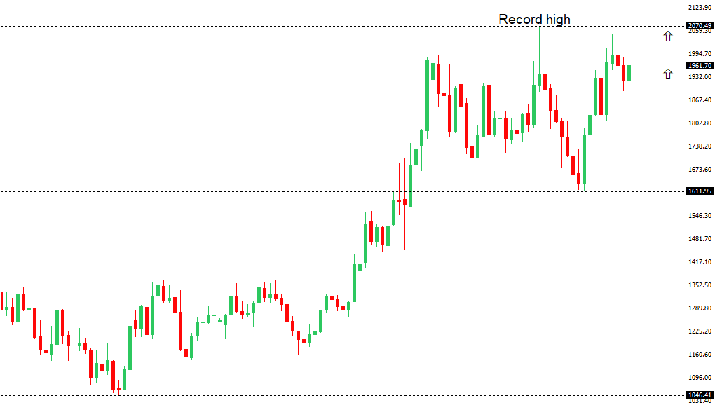 The yellow metal continues to be well supported on dips with solid demand from medium and longer-term accounts. These players are more concerned about inflation risk and a less upbeat global growth outlook. All of this should keep the commodity well supported, with many market participants also fleeing to the hard asset as the grand dichotomy of record high equities and record low yields comes to an unnerving climax.