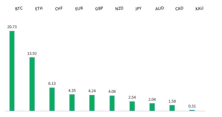 Peformance chart: 30 Day Performance vs. US dollar (%)