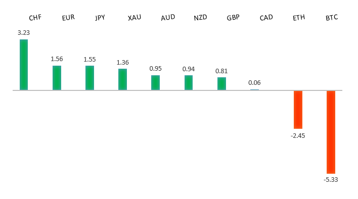 Peformance chart: 30 Day Performance vs. US dollar (%)