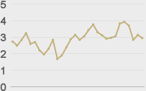 ETHUSD avg. trade size last 30 days ($k) |