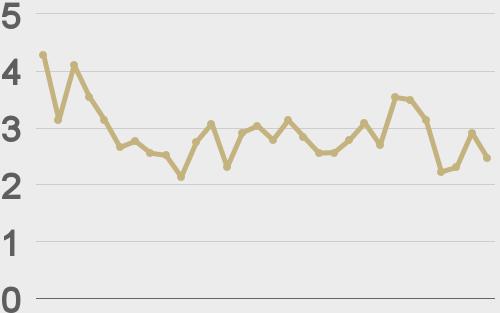 ETHUSD avg. trade size last 30 days ($k) |