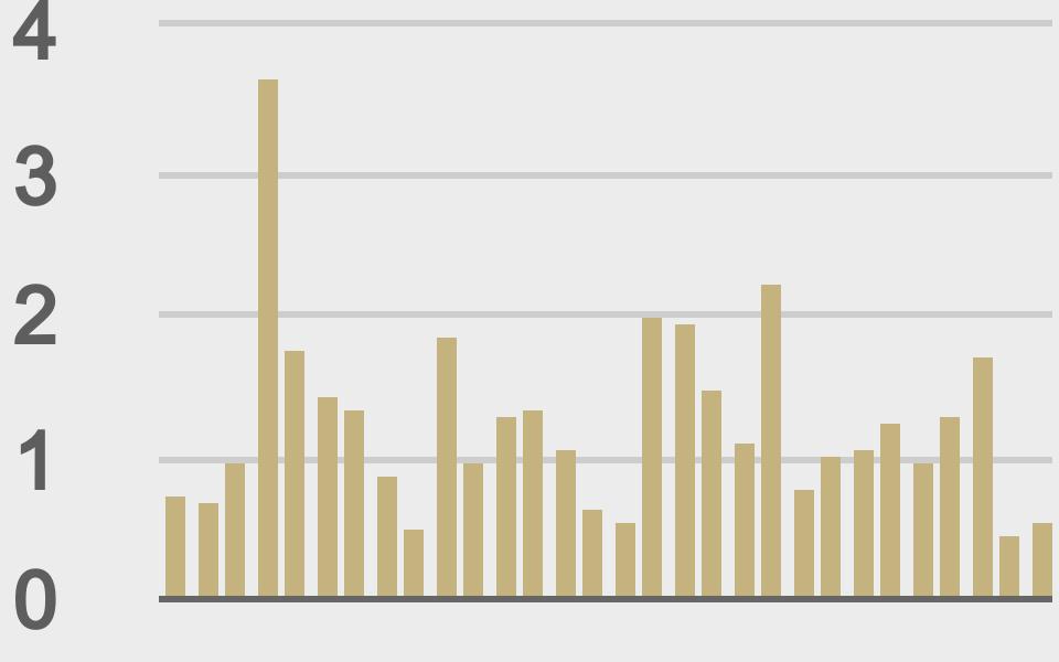 Price performance last 30 days avg. vs USD (%) |