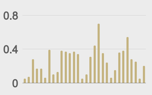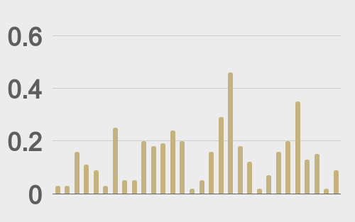 Bitcoin and ETH volatility are showing signs of wanting to bottom out after trending lower for weeks. We’re looking at average daily ranges in bitcoin and ether of $2,397 and $124 respectively.