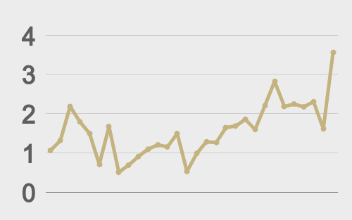 Looking at average position size over the past 30 days, we’re seeing average bitcoin position size at $8,279 and average position size for ether at $1,450.