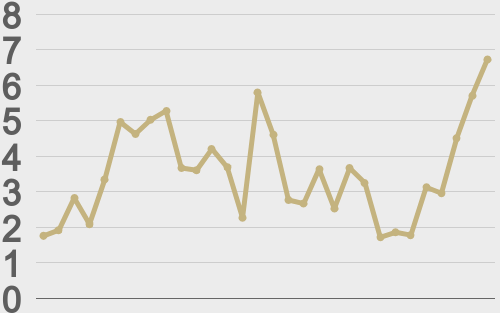 | ETHUSD avg. trade size last 30 days ($k) | ||||