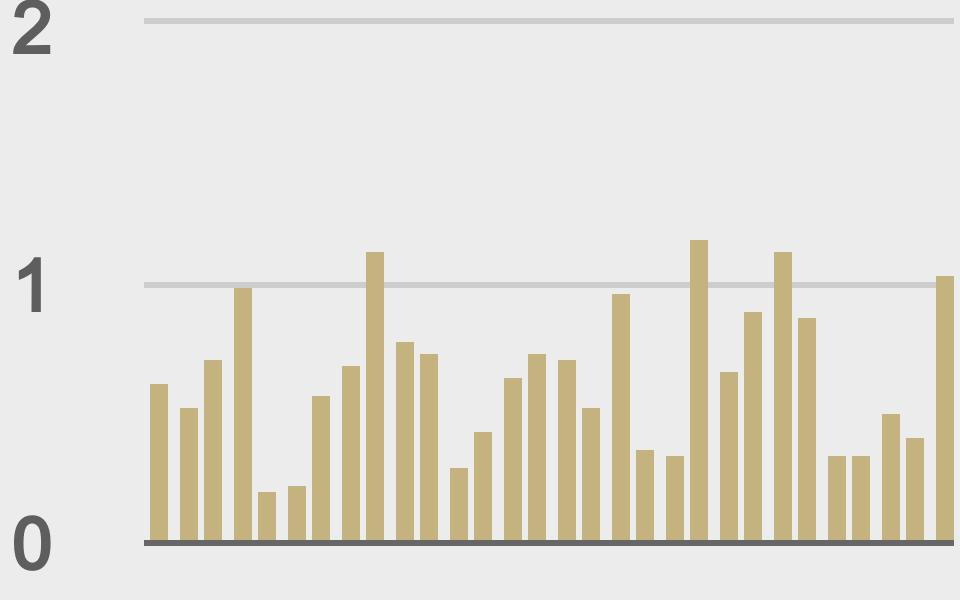 LMAX Digital volumes came roaring back on Wednesday after a lull in Monday and Tuesday trade. Total notional volume for Wednesday came in at its highest level since early September, printing $2.5 billion, 107% above 30-day average volume. Bitcoin volume jumped back above the yard mark, coming in 60% above 30-day average volume. Ether volume soared to incredible heights, also clearing a yard (a much rarer event), and even exceeding bitcoin volume, coming in at $1.1 billion, 198% above 30-day average volume. Looking at average position size over the past 30 days, we’re seeing average bitcoin position size at $15,243 and average position size for ether running up to $7,089. Volatility has been slowly picking up since finding a bottom in July. We’re now looking at average daily ranges in bitcoin and ether of $2,904 and $233 respectively. |