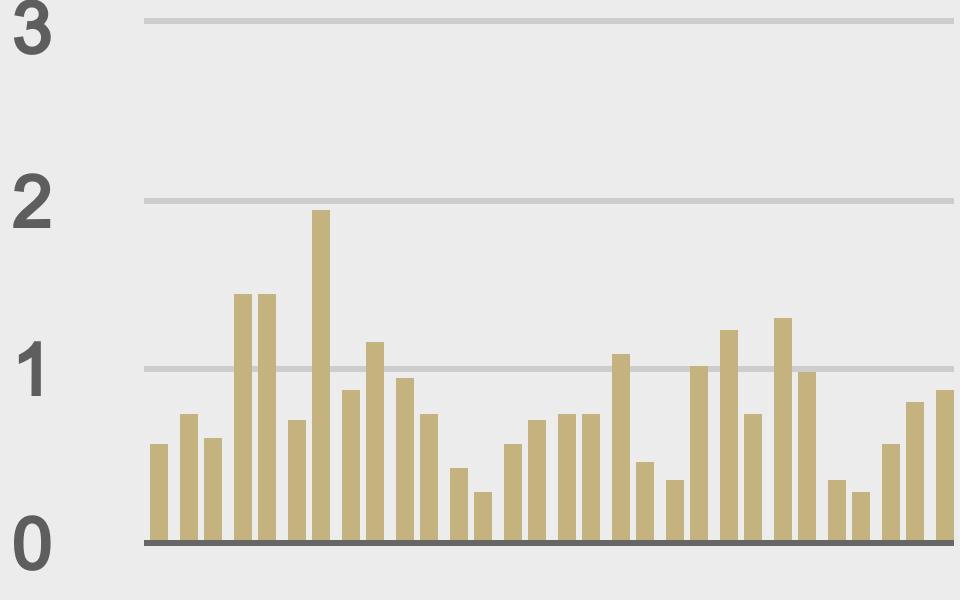 LMAX Digital volume has mostly held steady this week, though we have seen more activity around ether. Total notional volume for Wednesday came in at $886 million, 4% above 30-day average volume. Bitcoin volume printed $371 million on Wednesday, 17% below 30-day average volume. Ether volume came in at $456 million, 52% above 30-day average volume. Looking at average position size over the past 30 days, we’re seeing average bitcoin position size at $9,565 and average position size for ether at 6,166. Volatility has been trending lower in 2022. We’re now looking at average daily ranges in bitcoin and ether of $1,886 and $191 respectively. |
