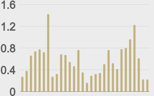 We’re looking at average daily ranges in bitcoin and ether of $2,847 and $218 respectively.