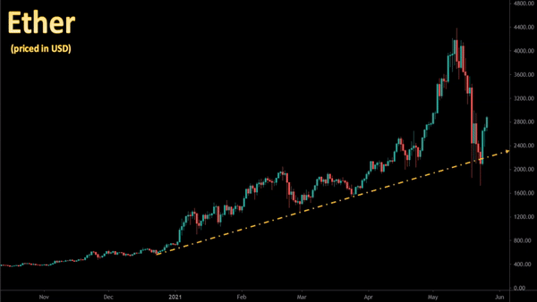 The timing of the start to the rebound earlier this week had coincided with the news of the establishment of the Bitcoin Mining Council, though with the market having already come off so hard and with the longer-term value proposition so compelling, it also made sense to see the aggressive dip buying. Venture capital and M&A related activity in the space also continues to push forward at a healthy pace.