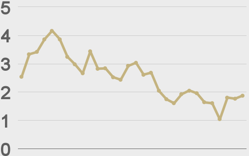 ETHUSD avg. trade size last 30 days ($k) |