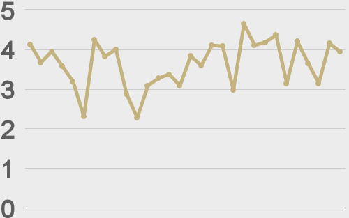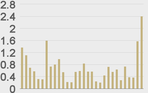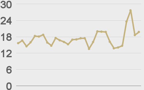 LMAX Digital volumes were up big on Wednesday, putting in the strongest single day performance since May 2022. Total notional volume for Wednesday came in at $2.4 billion, 240% above 30-day average volume. Bitcoin volume printed $2 billion on Wednesday, 264% above 30-day average volume. Ether volume came in at $269 million, 177% above 30-day average volume. Average position continues to trend up over the past 30 days. We’re seeing average bitcoin position size at $17,195 and average position size for ether at $3,676. Bitcoin and ether volatility have traded up to their highest levels since 2022. We’re looking at average daily ranges in bitcoin and ether of $1,666 and $104 respectively. |