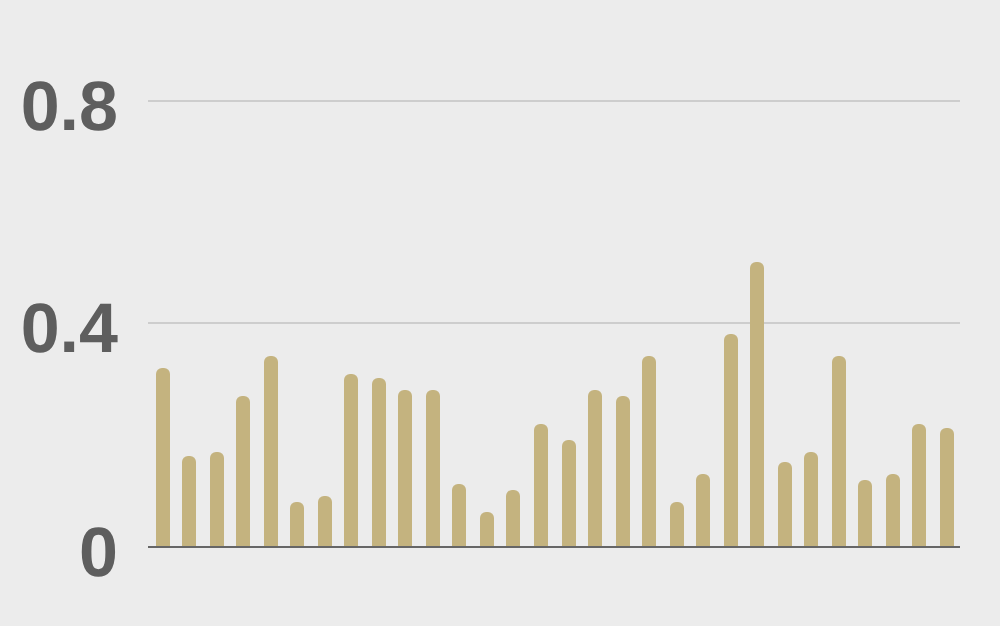 Average trade sizes held steady and within familiar ranges for both Bitcoin and Ether on Monday. Bitcoin average trade size was around $12,000, while Ether average trade size was around $8,000. Total notional volume at LMAX Digital over the past 30 days comes in at $69 billion. The average daily trading range for BTCUSD is $4,037. The average daily trading range for ETHUSD is $369.