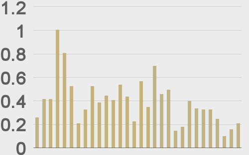 BTCUSD volumes last 30 days ($bn) |