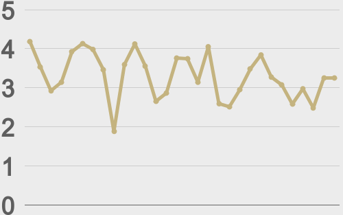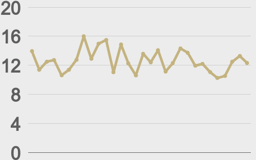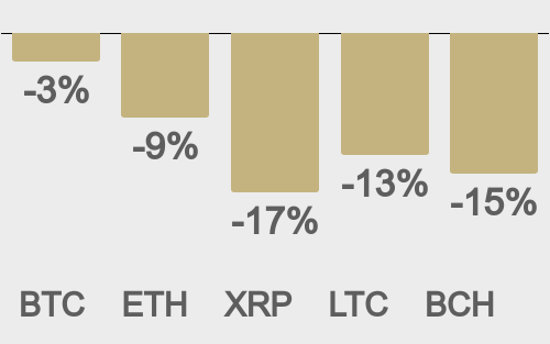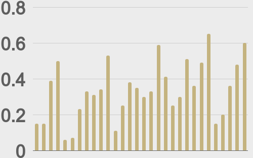 Bitcoin and ETH volatility is consolidating in the aftermath of the latest surge. We’re looking at average daily ranges in bitcoin and ether of $3,830 and $231 respectively.