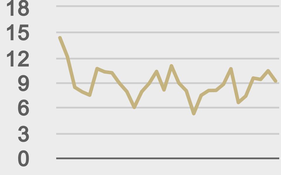 BTCUSD avg. trade size last 30 days ($k) |