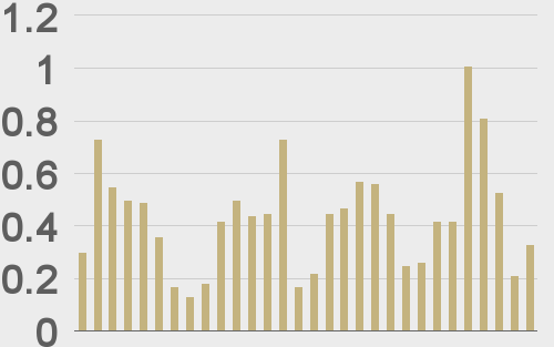 BTCUSD volumes last 30 days ($bn) |