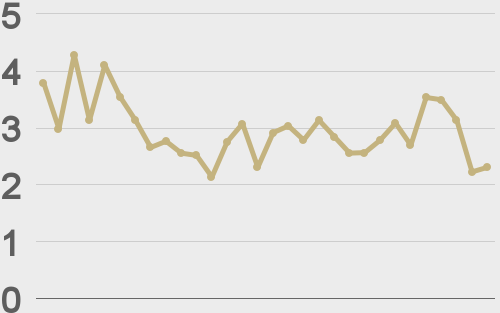 ETHUSD avg. trade size last 30 days ($k) |