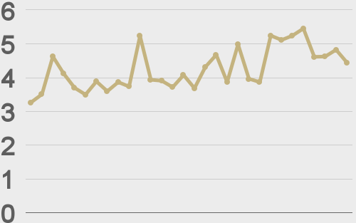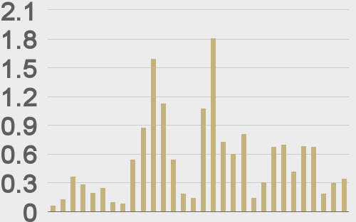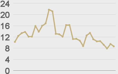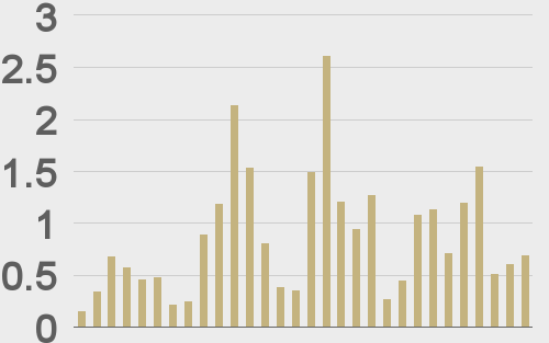 LMAX Digital volumes got off to a slower start this week. Total notional volume for Monday came in at $703 million, 20% below 30-day average volume. Bitcoin volume printed $345 million on Monday, 36% below 30-day average volume. Ether volume came in at $218 million, 3% below 30-day average volume. Looking at average position size over the past 30 days, we’re seeing average bitcoin position size at $13,334 and average position size for ether at $4,308. Market volatility is tracking at its highest levels for bitcoin since 2021 and ether since 2022. We’re looking at average daily ranges in bitcoin and ether of $3,610 and $219 respectively. |