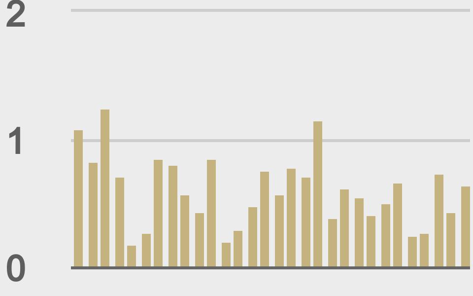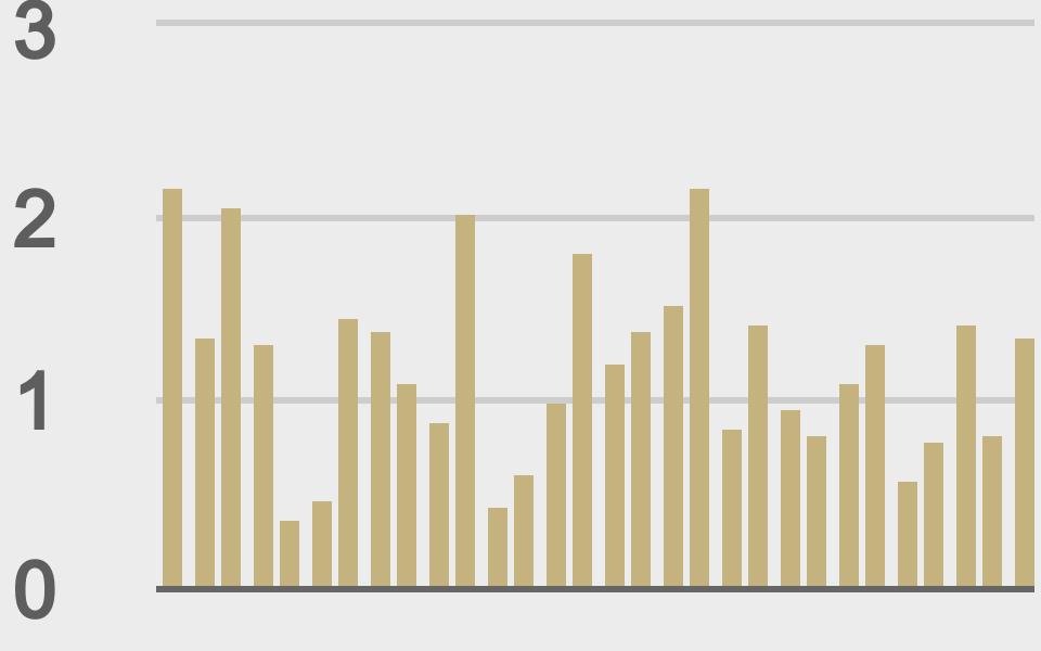 LMAX Digital volume recovered on Wednesday, with volatility around the FOMC decision helping things along. Total notional volume for Wednesday came in at $1.4 billion, 12% above 30-day average volume. Bitcoin volume printed $639 million on Wednesday, 4% above 30-day average volume. Ether volume came in at $579 million, 42% above 30-day average volume. Looking at average position size over the past 30 days, we’re seeing average bitcoin position size at $9,043 and average position size for ether at 8,173. Volatility has been slowly picking up since finding a bottom in July. We’re now looking at average daily ranges in bitcoin and ether of $3,083 and $305 respectively. |