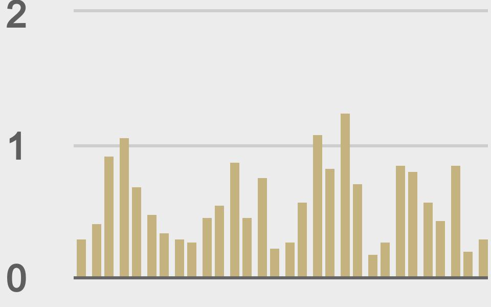 Total notional volume at LMAX Digital cooled off in the previous week on account of the US Thanksgiving holiday. Total notional volume from Monday through Friday came in at $6.9 billion, down 14% from a week earlier. Breaking it down per coin, Bitcoin volume came in at $3.6 billion in the previous week, off 20% from the week earlier. Ether volume came in at $2.2 billion, off 9% from the week earlier. Total notional volume over the past 30 days comes in at $34 billion. Looking at average position size over the past 30 days, we’re seeing average bitcoin position size at $10,822 and average position size for ether at $7,447. Volatility has been slowly picking up since finding a bottom in July. We’re now looking at average daily ranges in bitcoin and ether of $2,905 and $268 respectively. |