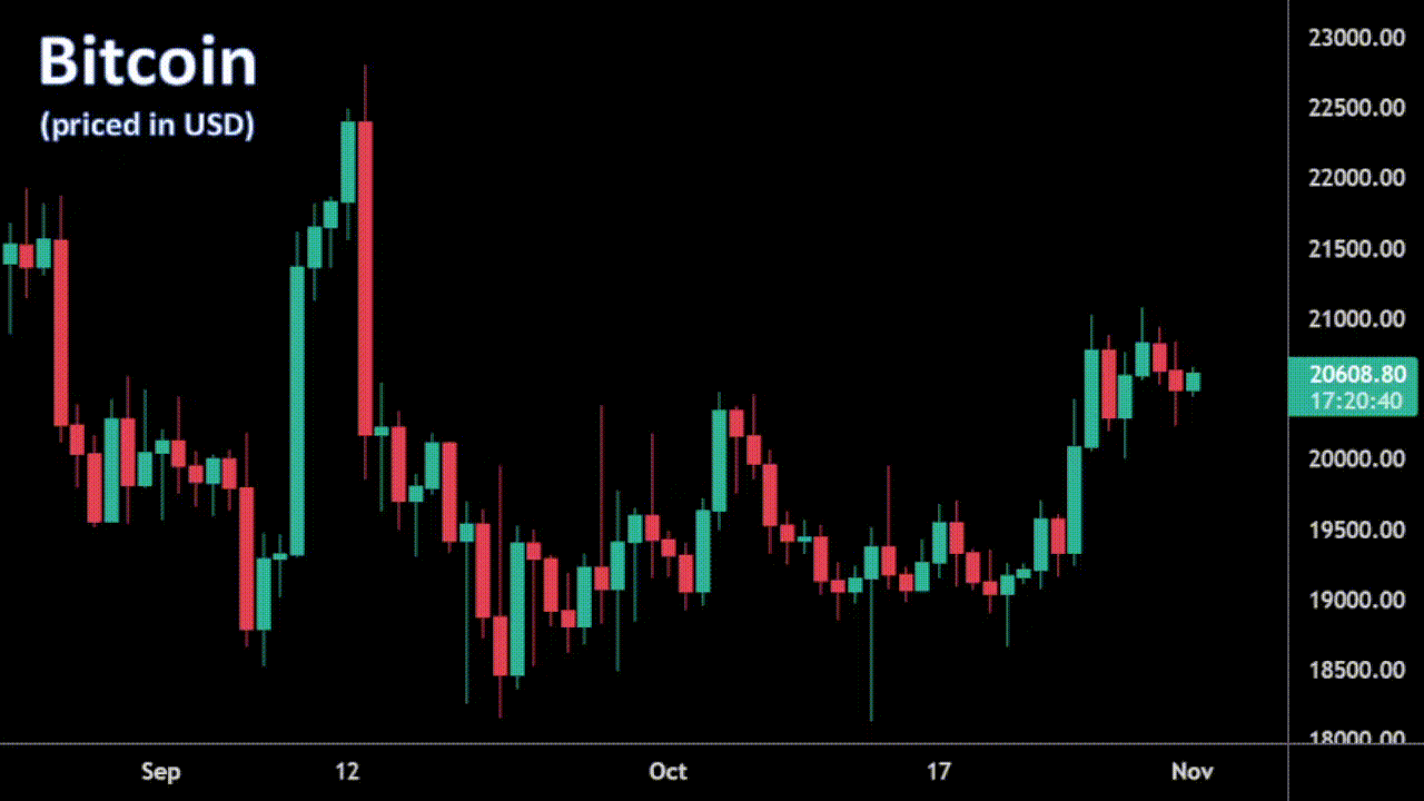 The market is very much fixated on the outcome of today’s Fed policy decision, which could set the tone for the direction prices take over the coming days and weeks. It’s worth noting, historically, the month of November has been a strong month for crypto assets. This follows an October month that had been projecting upside on its own track record of strong performance over the years. Given the current fundamentals and driving forces in markets, for crypto to want to trade higher, it would likely need to translate to signs of inflation cooling off in the US, or a communication from the Fed that turns a little less hawkish than what we’ve been hearing. Technically speaking, crypto assets have held up well in recent weeks, despite ongoing fallout in traditional assets, and there is now the possibility of a meaningful bottom, with bitcoin showing early stages of a double bottom formation. But for this bottom formation to be confirmed, we would need to see bitcoin break back above $25,200. Until then, the trend continues to point south, and risk remains for deeper setbacks in 2022. |