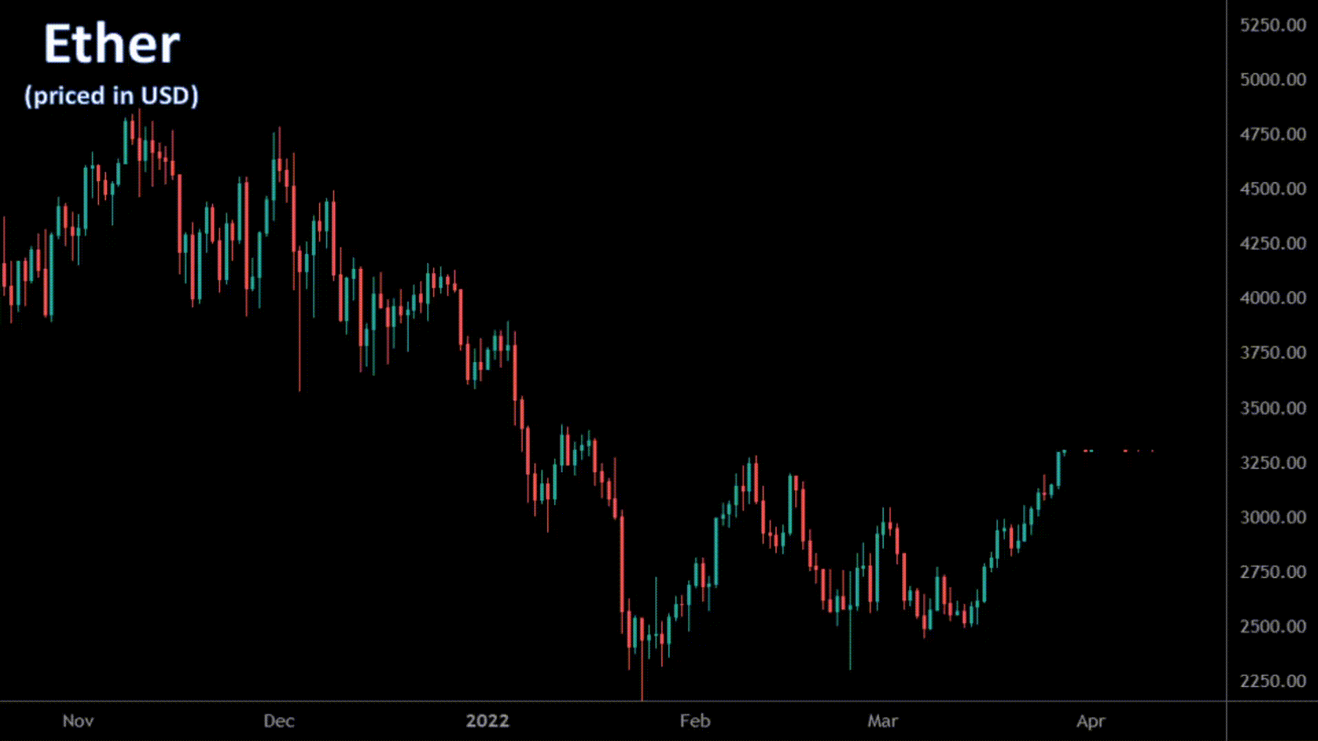 Total notional volume at LMAX Digital was up in the previous week. Total notional volume from Monday through Friday came in at $3.99 billion, 15% higher than the week earlier. Breaking it down per coin, Bitcoin volume came in at $2.5 billion in the previous week, up 20% from a week earlier. Ether volume came in at $1.1 billion, up 6% from the week earlier. Total notional volume over the past 30 days comes in at $17.6 billion. Looking at average position size over the past 30 days, we’re seeing average bitcoin position size at $12,713 and average position size for ether at $5,761. Volatility has cooled off in 2022 after topping out in December. We’re now looking at average daily ranges in bitcoin and ether of $1,676 and $145 respectively. |