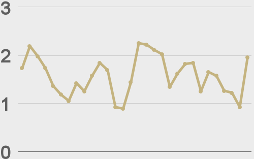 ETHUSD avg. trade size last 30 days ($k) |