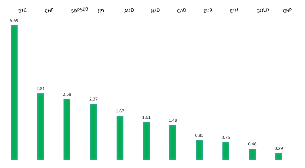 Peformance chart: 30-Day Performance vs. US dollar (%)