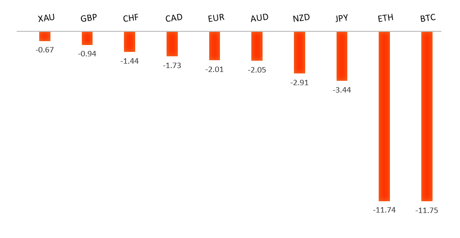 Peformance chart: 30 Day Performance vs. US dollar (%)