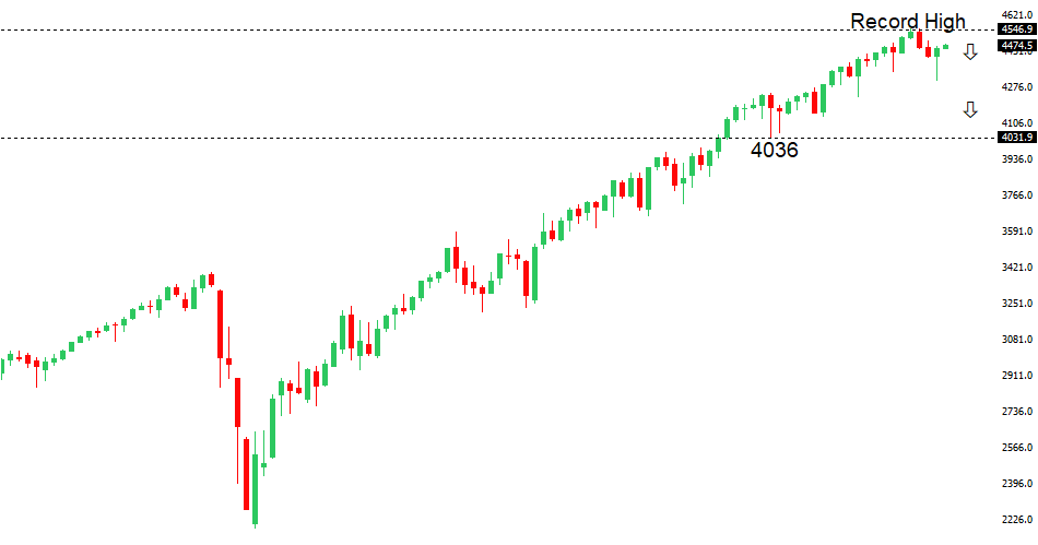 Longer-term technical studies are looking quite exhausted and the market is showing signs of wanting to roll over after racing to another record high. Look for rallies to be well capped ahead of 4600, with a break back below 4353 to strengthen the outlook.US SPX 500 – fundamental overview