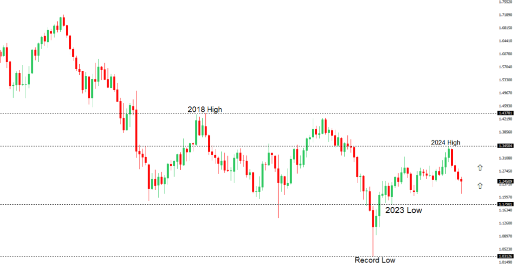 Signs have emerged of the market wanting to put in a longer-term base after collapsing to a record low in September 2022. The door is now open for the next major upside extension towards the 2018 high at 1.4377. Setbacks should be well supported above 1.2000 on a monthly close basis.GBPUSD – fundamental overview