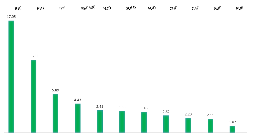 Peformance chart: 30 Day Performance vs. US dollar (%)