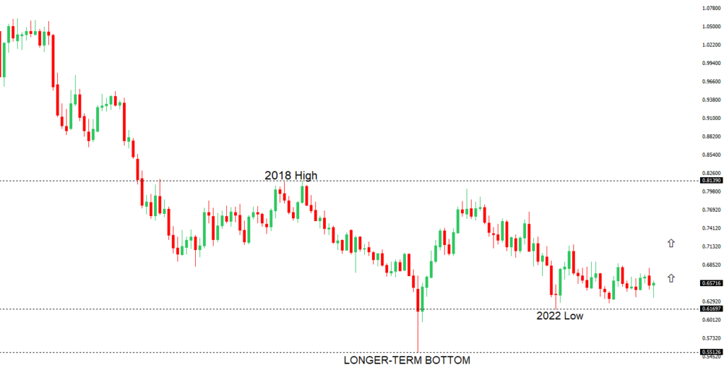 Overall pressure remains on the downside with the market continuing to stall out on runs up into the 0.6500 area. At the same time, there are some signs of the market wanting to put in a longer-term base. Ultimately, a break back above 0.6500 would be required to take the medium-term pressure off the downside and encourage this prospect. A monthly close below 0.5800 will intensify bearish price action.NZDUSD – fundamental overview