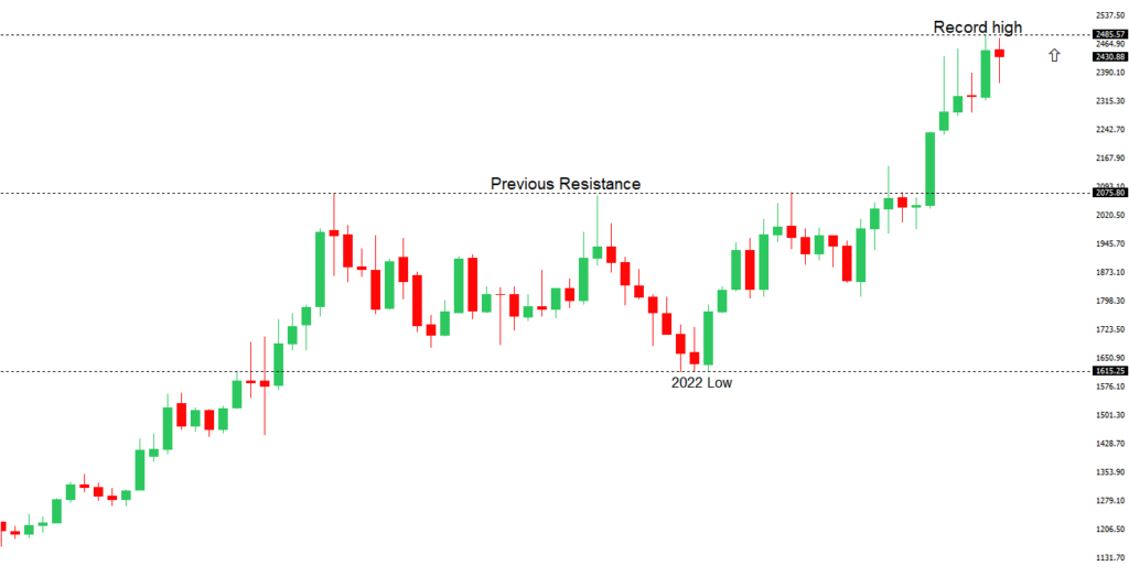The yellow metal has pushed record highs in 2024 with solid demand from medium and longer-term accounts. These players are more concerned about inflation, geopolitical risk and a less upbeat global growth outlook. All of this should keep the commodity well supported, with many market participants also fleeing to the hard asset as the grand dichotomy of record high equities and record low yields comes to an end.