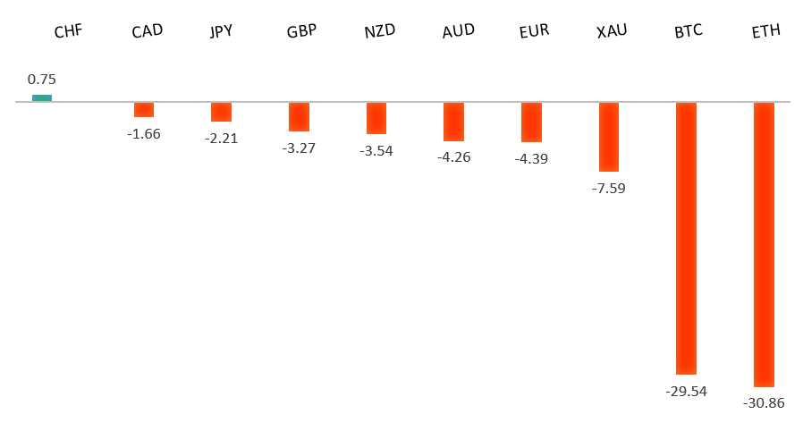 Peformance chart: 30 Day Performance vs. US dollar (%)