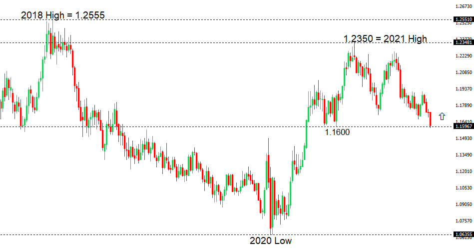 The market has been looking for a higher low since topping out in 2021 up at 1.2350. Ideally, setbacks continue to be well supported above 1.1600 on a weekly close basis in favour of the next major upside extension back through 1.2350 and towards a retest of the 2018 high at 1.2555 further up. Only a weekly close below 1.1600 would force a rethink.EURUSD – fundamental overview