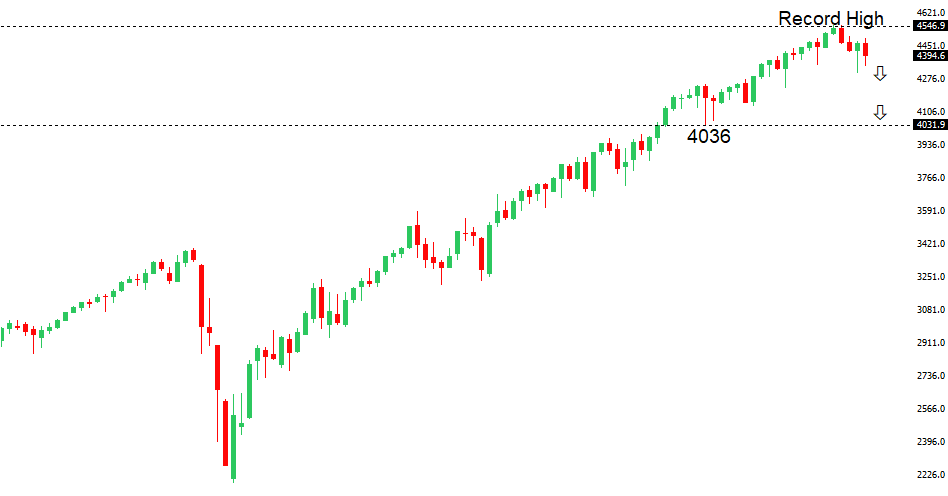 Longer-term technical studies are looking quite exhausted and the market is showing signs of wanting to roll over after racing to another record high. Look for rallies to be well capped ahead of 4600, with a break back below 4353 to strengthen the outlook.US SPX 500 – fundamental overview