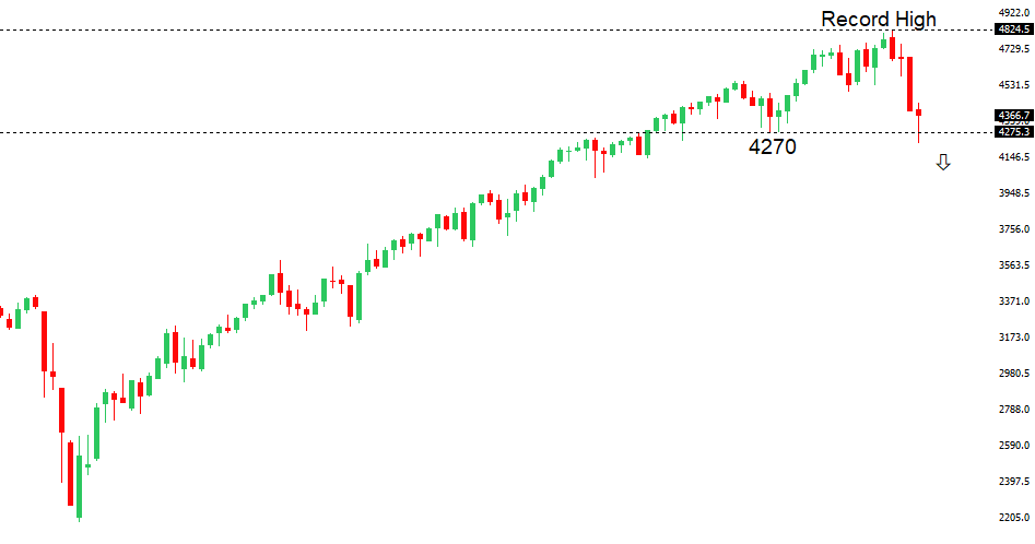 Longer-term technical studies are in the process of unwinding from extended readings off record highs. The latest breakdown below 4,272 opens the door for the next major downside extension towards 3,500. Back above 4,612 will be required at a minimum to take the immediate pressure off the downside.US SPX 500 – fundamental overview