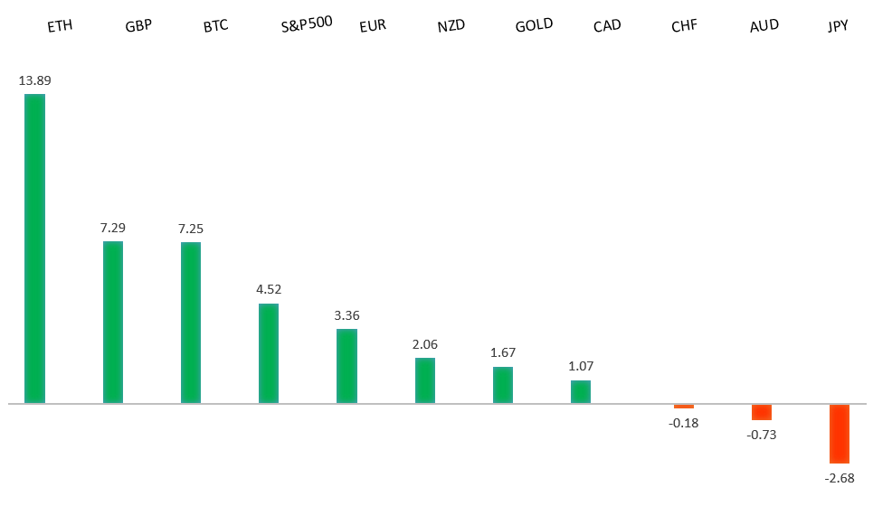 Peformance chart: 30 Day Performance vs. US dollar (%)