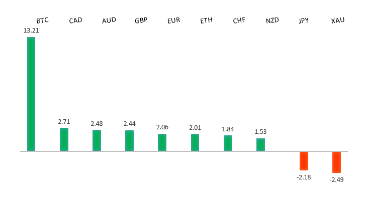 Peformance chart: 30 Day Performance vs. US dollar (%)