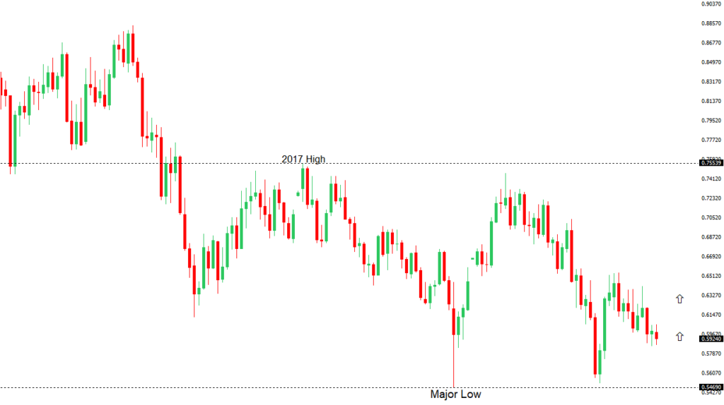 Overall pressure remains on the downside with the market once again stalling out on a run up into the 0.6500 area. Ultimately, a break back above 0.6049 would be required to take the immediate pressure off the downside. A monthly close below 0.5900 would intensify bearish price action.NZDUSD – fundamental overview