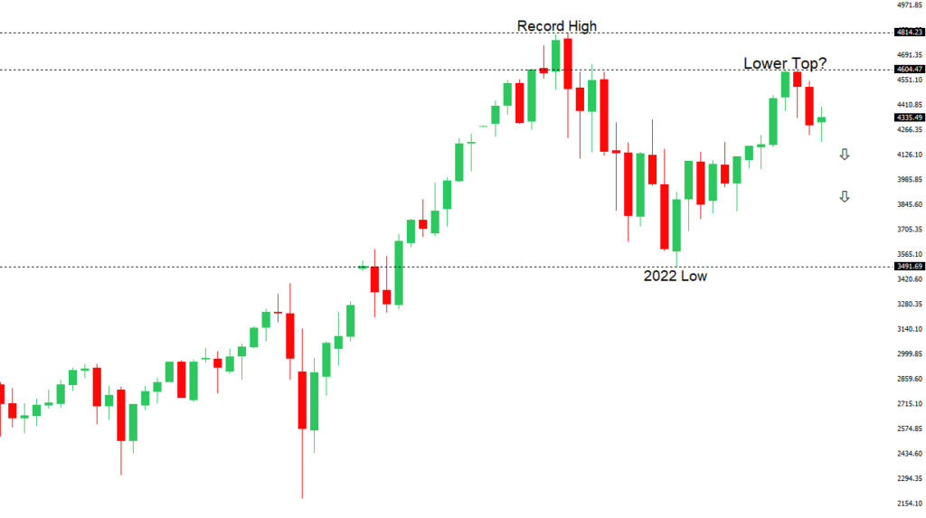 Longer-term technical studies are in the process of unwinding from extended readings off record highs. Look for rallies to be well capped in favor of lower tops and lower lows. A monthly close back above 4600 will be required to take the immediate pressure off the downside. Next key support comes in at 4200.US SPX 500 – fundamental overview