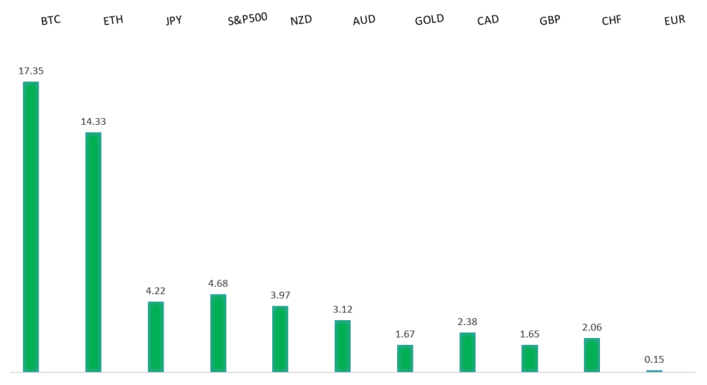 Peformance chart: 30 Day Performance vs. US dollar (%)