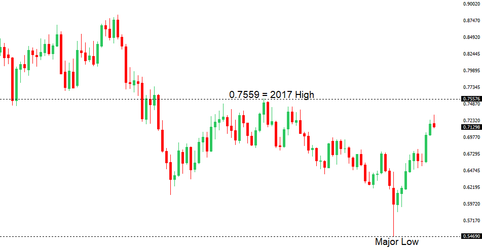 The SNB remains uncomfortable with Franc appreciation and continues to remind the market it will need to be careful about any attempts at trying to force an appreciation in the currency. But the SNB will also need to be careful right now, as its strategy to weaken the Franc is facing headwinds from a less certain global outlook. Any signs of renewed risk liquidation will likely invite a very large wave of demand for the Franc that will put the SNB in the more challenging position of needing to back up its talk with action, that ultimately, may not prove to be as effective as it once was, given where we're at in the monetary policy cycle.AUDUSD – technical overview