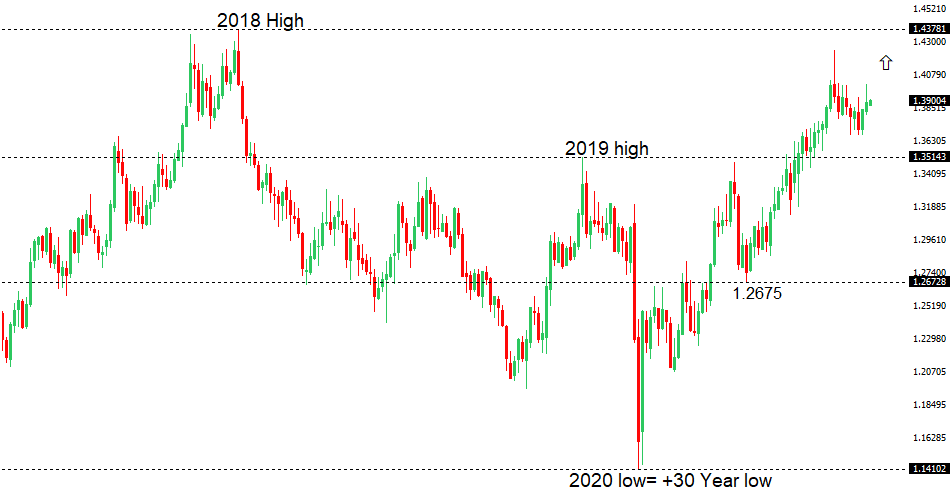 Technical studies are in the process of unwinding from stretched levels after the push to fresh multi-month highs. This leaves room for additional consolidation, before the market considers a meaningful bullish continuation towards a retest of the 2018 high. But look for setbacks to now be very well supported into the 1.3500 area.GBPUSD – fundamental overview